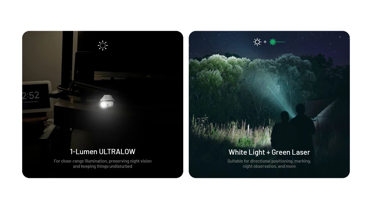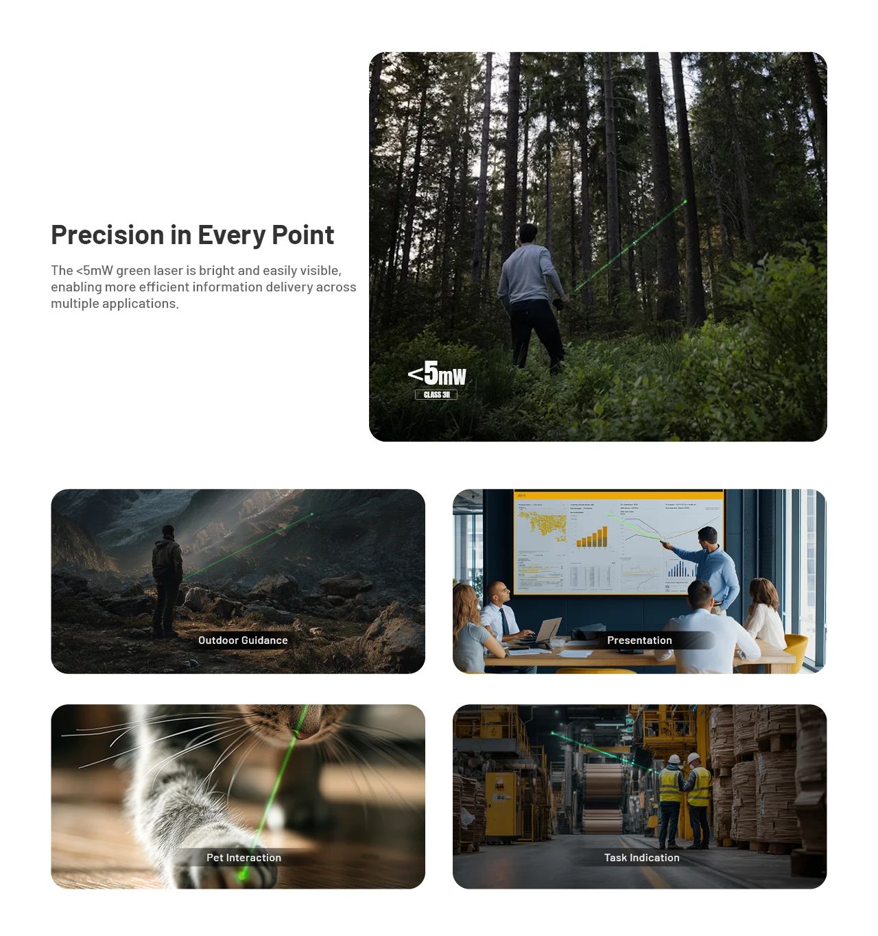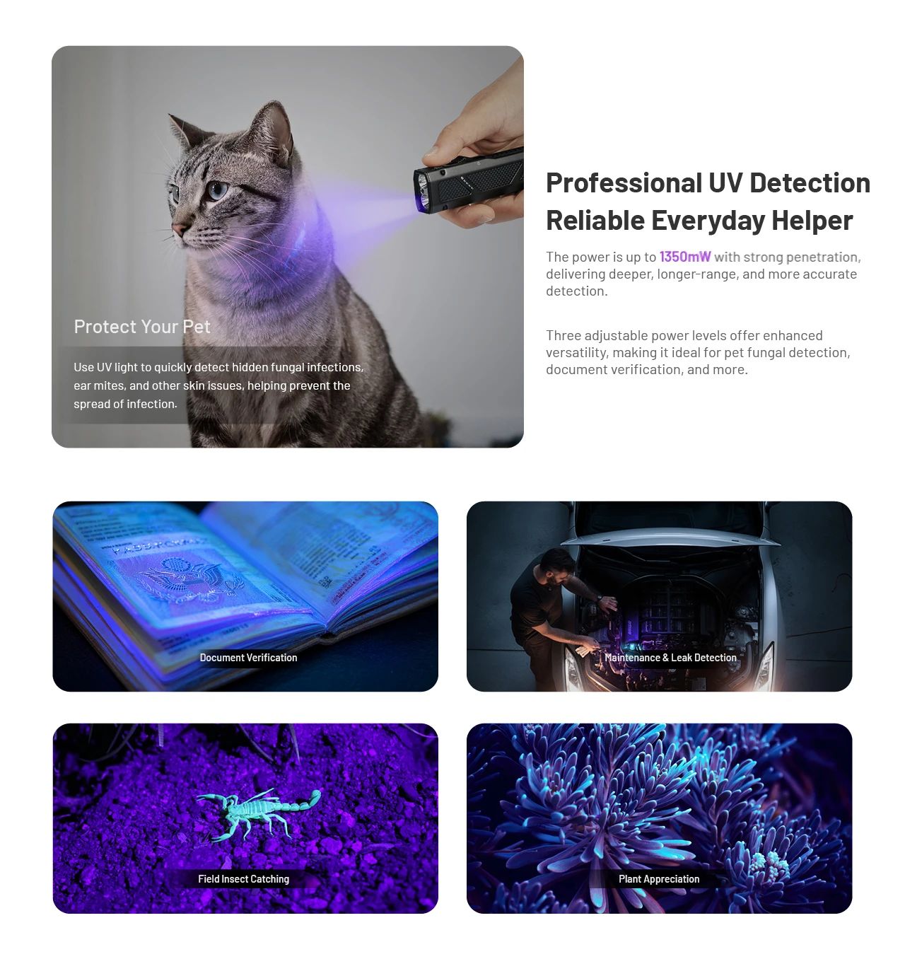 • Brugbare 1500 lumens, 4 hvide lysstyrker, 3 UV lysstyrker og grøn laser