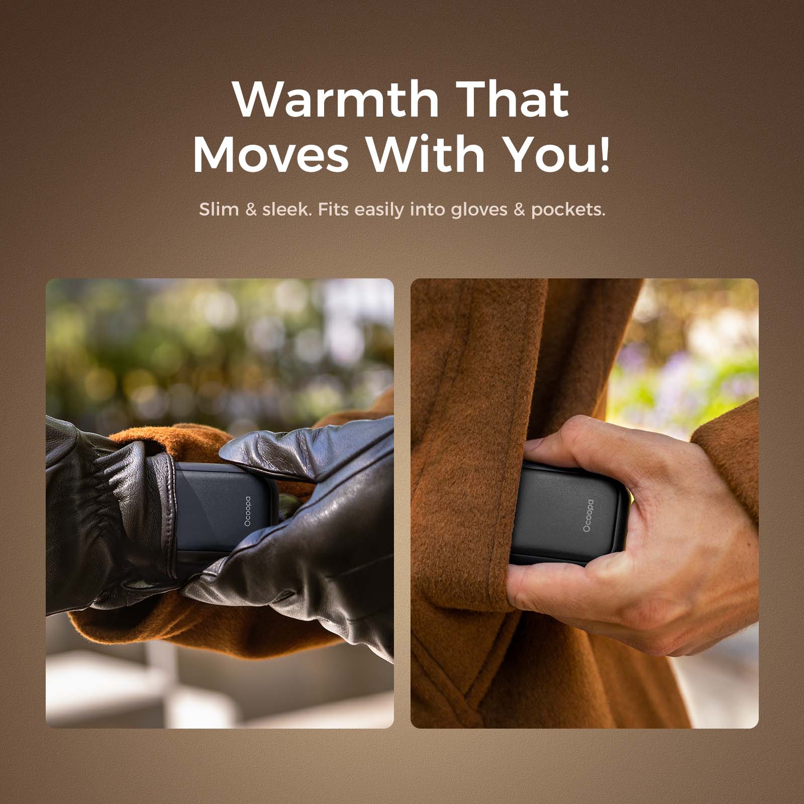 Smart håndvarmer med et slankt design som passer nemt i handsker, lommer og tegnebøger.